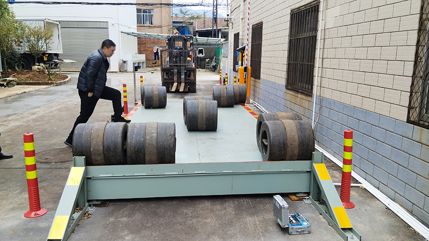 客户是昆明市某制造企业,采购我司“2.5×5米 20吨 单引坡高精度地磅秤(显示精度10kg,地磅物理性防作弊,加装远程防作弊器)”,用于厂区贸易结算、原材料入库和成品出库。除小型车辆称重外,还兼容手推车、叉车等小型运输设备称重。